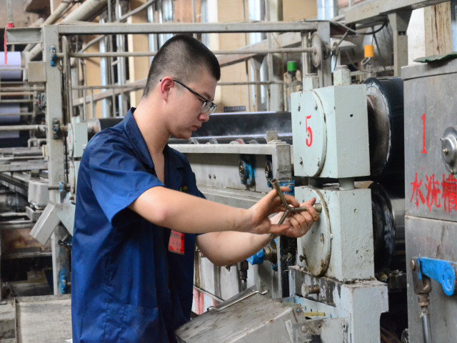 炎炎夏日里,人要時時注意防暑降溫,設(shè)備亦然。夏季車間溫度高,濕度重,對設(shè)備的維護保養(yǎng)要比其它季節(jié)更重要。一上班,面一車間設(shè)備人員李洪凱和師父韓海濤就開始了對車間印染設(shè)備的維護保養(yǎng)工作。清潔設(shè)備表面、檢查緊固零部件、檢查更換易磨損零件……內(nèi)容看似簡單,但只要把這些簡單的基礎(chǔ)性保養(yǎng)工作做好,就能大大減少設(shè)備的檢修工作量和檢修次數(shù),保障設(shè)備的順利運行。
