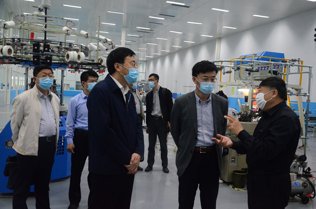 5月14日,山東省證監(jiān)局局長(zhǎng)陳家琰一行在濱州市金融監(jiān)管局黨組書記、局長(zhǎng)張謙,濱城區(qū)副區(qū)長(zhǎng)衣明東等陪同下,蒞臨公司考察指導(dǎo)工作。公司黨委書記、董事長(zhǎng)王力民等陪同陳家琰一行參觀了花布生產(chǎn)車間、花布產(chǎn)品設(shè)計(jì)開發(fā)部、中控室、工程技術(shù)研究院、創(chuàng)意中心等處,并進(jìn)行了深入的座談交流。