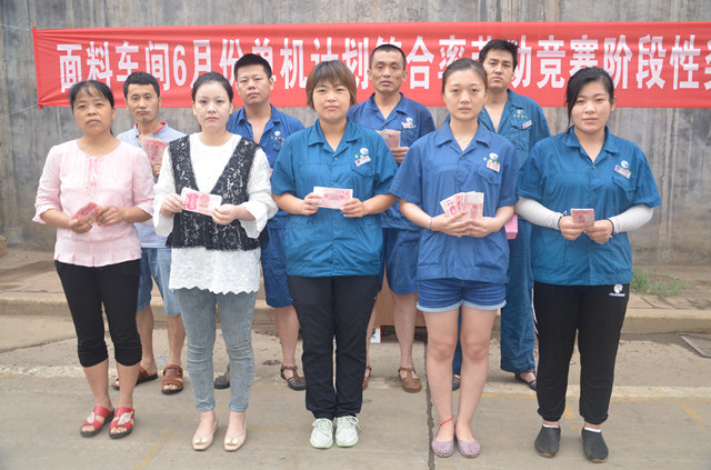 收到獎(jiǎng)勵(lì)金的員工們臉上洋溢著喜悅。“收到勞動(dòng)競(jìng)賽獎(jiǎng)勵(lì)非常開(kāi)心,我們一定會(huì)再接再厲,為染好每一米布而努力!”面二車間5#打底機(jī)組組長(zhǎng)程建龍說(shuō)到。面料車間主任曹劍總結(jié)到:“此次階段性競(jìng)賽獎(jiǎng)勵(lì)的發(fā)放,主要是對(duì)第一階段完成獎(jiǎng)勵(lì)的表彰,也是為6月份中、下旬再接再厲的發(fā)動(dòng)。希望大家在已有成績(jī)基礎(chǔ)上,繼續(xù)戰(zhàn)高溫、斗酷暑,全力以赴,再創(chuàng)新佳績(jī)。”