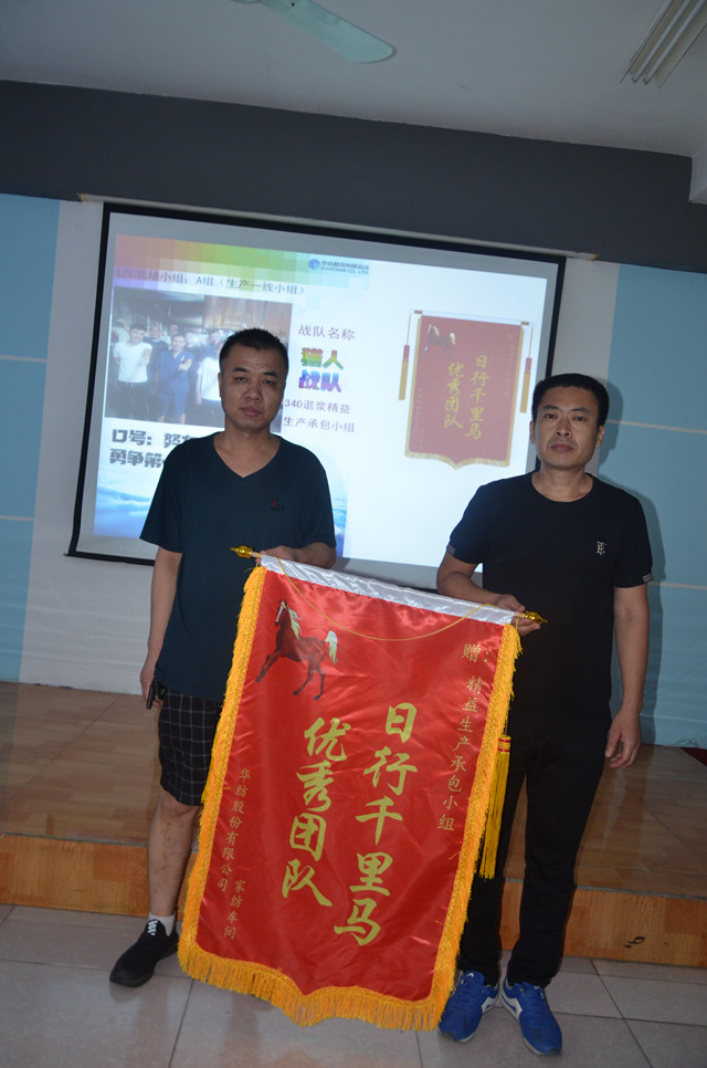 7月份,家紡車間燒毛精益生產創客小組完成產量2838174米,一等品率為99.85%;個人“戰斗力排名”前三名依次為:付建斌、卜憲君、張建軍。該小組在8月份工作中將繼續做好本小組培訓(工位質量、操作標準、攻關目標及措施),一起努力完成攻關目標。340精煉精益生產創客小組完成產量1291322米,一等品率99.97%;個人“戰斗力排名”前三名依次為:肖澤周、李華、高美霞。該小組的口號是“努力,奮進,勇爭第一!”力爭8月份攻關一等品率不低于99.5%。冷染精益生產創客小組完成產量1152403米,一等品率為99.25%;個人“戰斗力排名”前三名依次為:王新美、王士波、齊寧寧。該小組只有一名員工因家里有事休兩個班,其余成員均為全勤。卷烘精益生產創客小組完成產量2257435米,一等品率為99.93%;個人“戰斗力排名”前三名依次為:劉京柱、閆倍倍、池連國。該小組8月份重點整改內容為縫頭不齊、引布使用不規范、落布不合格三項。320拉幅精益生產創客小組完成產量1041956米,一等品率為99.53%;個人“戰斗力排名”前三名依次為:毛九濤與牌紅軍(并列)、李志強與王沙沙(并列)、劉曉斐。該小組8月份機組目標產量130萬米、一等品率99.75%。