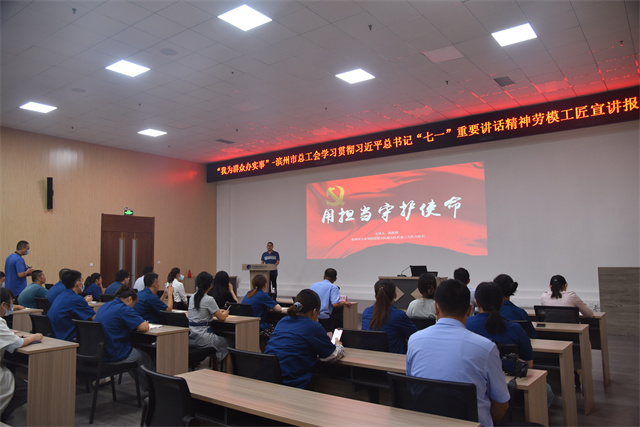 為深入學習宣傳貫徹習近平總書記在慶祝中國共產黨成立100周年大會上的重要講話精神,持續推進黨史學習教育,由濱州市總工會主辦的“我為群眾辦實事”學習宣傳貫徹習近平總書記“七一”重要講話精神勞模(工匠)宣講報告會首次宣講,在公司會議中心舉辦。