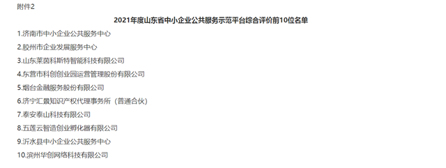 導(dǎo)讀:日前,“2021年的山東省中小企業(yè)公共服務(wù)示范平臺(tái)綜合評(píng)價(jià)”結(jié)果出爐,華創(chuàng)網(wǎng)絡(luò)科技有限公司等10個(gè)中小企業(yè)公共服務(wù)示范平臺(tái)列綜合評(píng)價(jià)前10位。