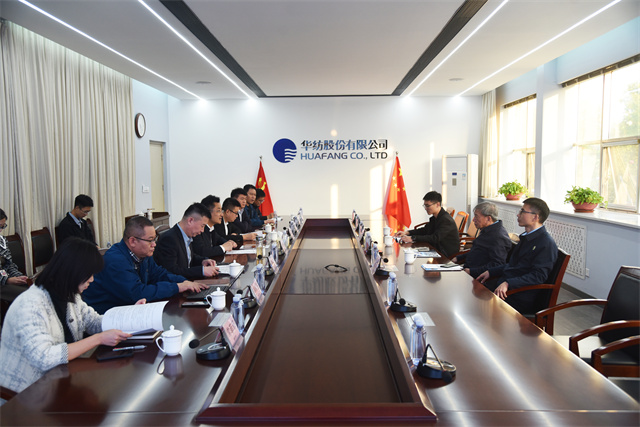 參觀結(jié)束后,座談交流會(huì)在一樓會(huì)議室召開,濱城區(qū)委常委、組織部部長李一鳴主持會(huì)議。會(huì)上,閆英山對劉嘉麒院士一行的到來致以熱烈歡迎,并詳細(xì)介紹了企業(yè)發(fā)展歷程、生產(chǎn)運(yùn)營、人才建設(shè)、技術(shù)研發(fā)及成果轉(zhuǎn)化等方面的情況。劉嘉麒院士也介紹了自己的研究領(lǐng)域和豐碩成果。隨后,雙方圍繞技術(shù)合作展開深入交流。劉嘉麒院士對公司在技術(shù)創(chuàng)新和產(chǎn)品研發(fā)方面取得的成就給予高度評價(jià),并表示希望未來能與華紡在相關(guān)領(lǐng)域開展更廣泛合作,共同推動(dòng)紡織行業(yè)的科技進(jìn)步與創(chuàng)新發(fā)展。