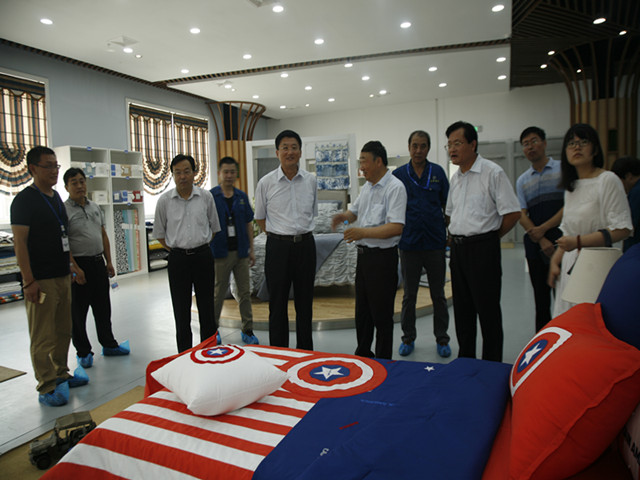 導讀:8月2日,濱州市市委常委、常務副市長張凱來到公司調研指導工作,公司黨委書記、董事長王力民陪同張凱一行參觀了科技產業園中的花布產品設計部、花二車間、污水處理、家紡展廳