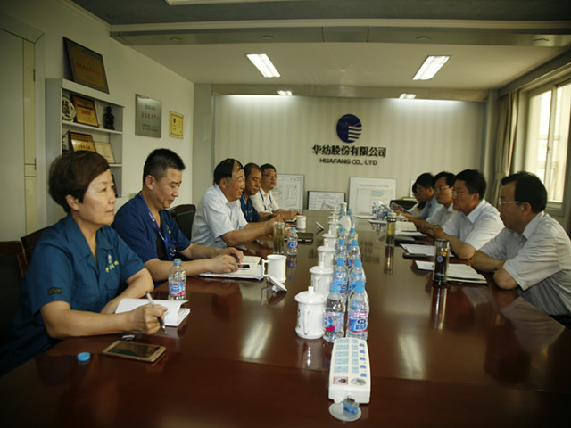 8月2日,濱州市市委常委、常務副市長張凱來到公司調研指導工作,公司黨委書記、董事長王力民陪同張凱一行參觀了科技產業園中的花布產品設計部、花二車間、污水處理、家紡展廳、家紡成品車間、工程技術研究院(含博士后工作站)及公司檢測中心、家紡車間、面一車間、熱力車間、中控室、服裝車間等處所,并向張凱一行介紹了公司“一體兩翼”發展及整體轉型升級情況。