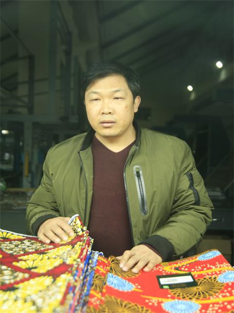 近年來,花布公司業(yè)務經(jīng)理付建祥針對非洲的市場與客戶開發(fā)取得重大進展,尤其是在2016年營銷業(yè)務領域,他在維護和開發(fā)市場與客戶,通過主動服務客戶以及與客戶溝通等,取得了良好的營銷業(yè)績。2016年前11個月,共完成銷量8614.40萬米,實收資金5.03億元,實現(xiàn)毛利1297.83萬元。