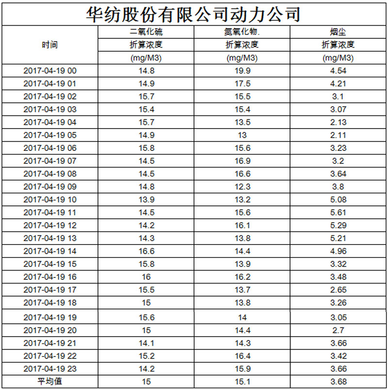 煙氣排放數據信息公開2017.4.19數據