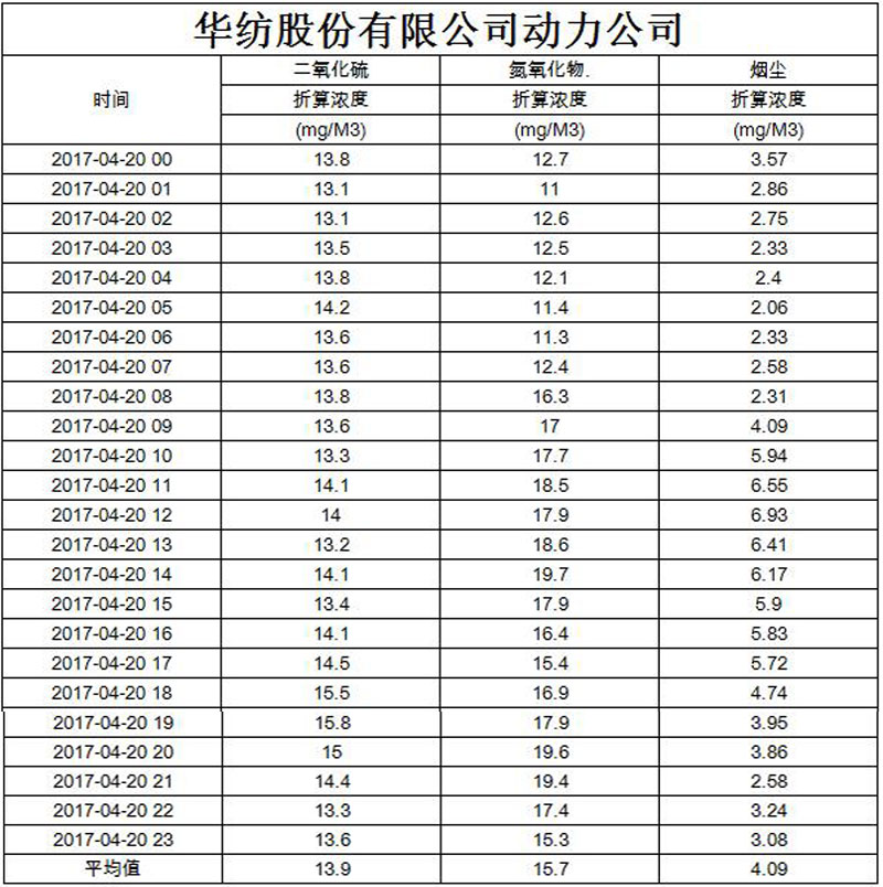 煙氣排放數據信息公開2017.4.20數據