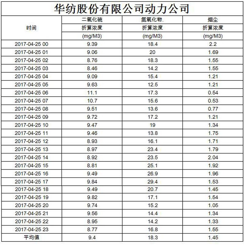 煙氣排放數據信息公開2017.4.25數據