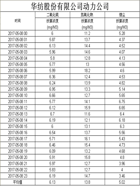 煙氣排放數據信息公開2017.5.8數據