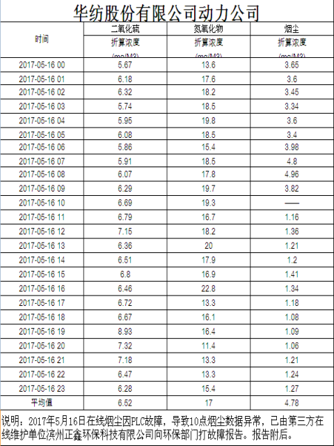煙氣排放數據信息公開2017.5.16數據
