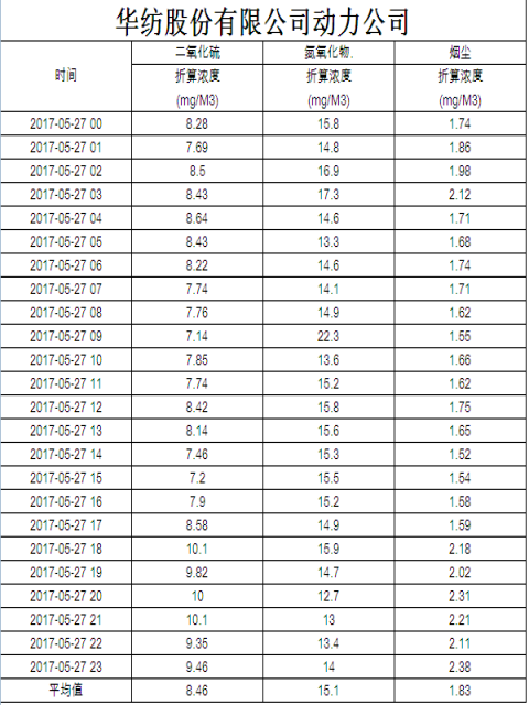 煙氣排放數(shù)據(jù)信息公開2017.5.27數(shù)據(jù)