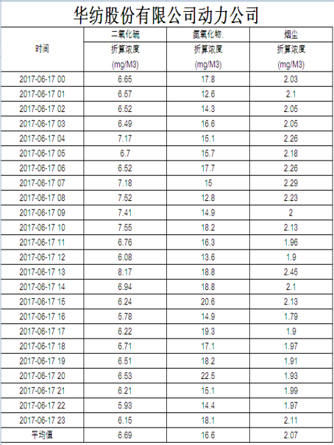煙氣排放數據信息公開2017.6.17數據