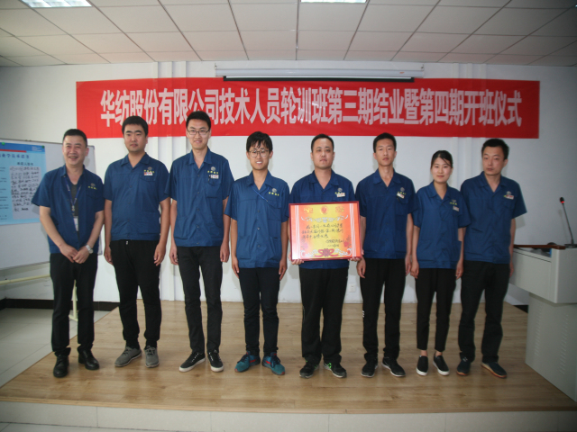 6月18日,公司專業技術輪訓班第三期結業暨第四期開班儀式,在公司工程技術研究院舉行。儀式上,工程技術研究院副院長孫紅玉對第三期輪訓工作進行了總結;總工程師羅維新宣讀了《關于對染整專業技術培訓班(第三期)馬士國等35人準予結業的通報》、《關于對染整專業技術培訓班(第三期)優秀團隊、優秀學員的表彰決定》、《關于對染整專業技術培訓班(第四期)學員組成的通報》;總經理閆英山為第三期輪訓班結業學員頒發結業證書,為優秀團隊花二車間小組及馬士國、李義、陳愛民等三名優秀學員頒發獎狀證書,為第四期學員頒發了專業學習書籍;王金亮、馬士國、商曉峰分別代表往期學員、本期學員和下期學員發言;公司黨委書記、董事長王力民圍繞堅持“求學、求知、求真、求實”的作風信條做了重要講話。