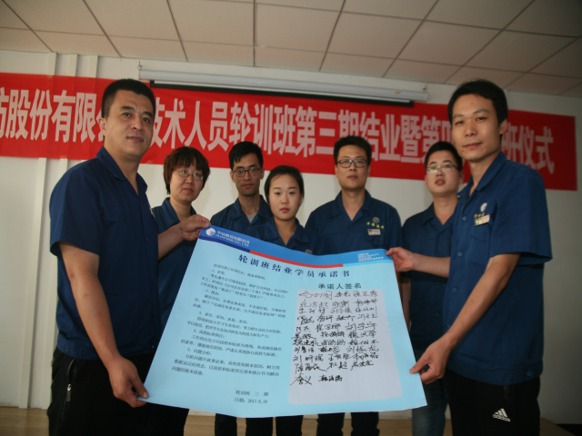 6月18日,公司技術人員輪訓班第三期的35名學員正式結業。輪訓結束后,他們將回到各自工作崗位,把輪訓期間所學知識運用于專業技術實踐當中。為做好一名專業技術人員的本職工作,他們分別在承諾書上簽下各自的名字,從態度、使命、學術作風、流程標準和問題分析等五個方面做了鄭重承諾。他們表示,在承諾書上簽下自己的名字,等于是表明從“我該干”為“我要干”的態度的轉變。