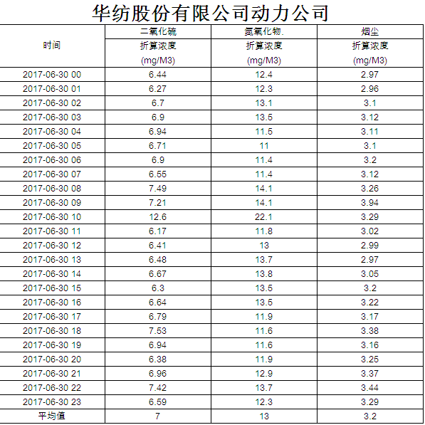 煙氣排放數據信息公開2017.6.30數據
