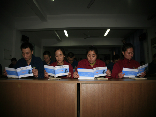 圖為公司向生產一線部分輪班(工段)長發放《手冊》時的情形。