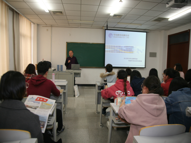 在當天的“經緯大講堂”上,公司展示了企業自1976年以來的沿革歷史、基本概況、技術創新、人才培育等內容,并重點詮釋了企業理念、愿景、使命、價值觀以及“家文化”關鍵詞、未來發展等內容。公司把自身文化為魂的思想同天津工業大學文化育人的宗旨相融合,通過實例講解盡可能使在場的大學生感知華紡文化、認同華紡精神,努力引導大學生不忘初心、堅守理想,選擇有責任、勇擔當的企業去創業干事,在新時代的大背景下,為實現中華民族的偉大復興貢獻力量。